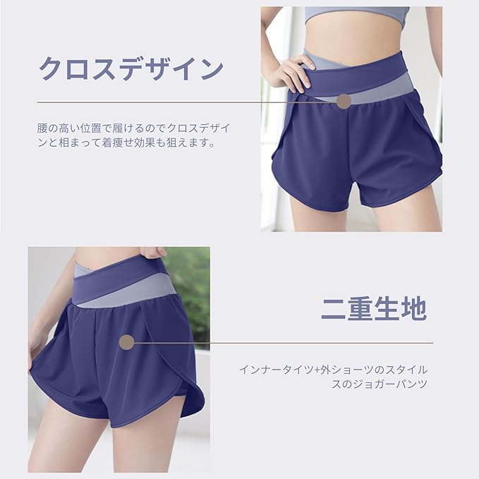 [MORGEN SKY] レディース ショートパンツ 短パン ジョガーパンツ 部屋着 ジム ヨガウェア フィットネス スポーツ スウェット ランニング トレーニング ショーツ付き ポケット 3分丈 ゆったり 通気 速乾 薄手 DK007 | KAZESHOP