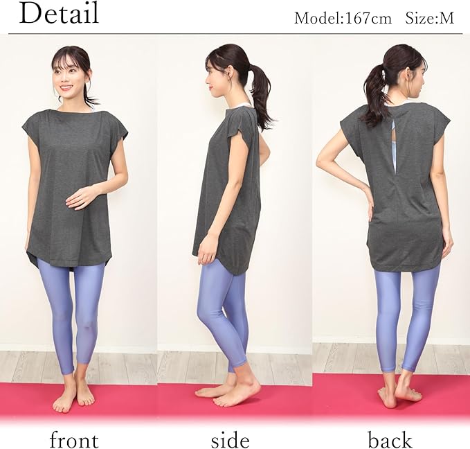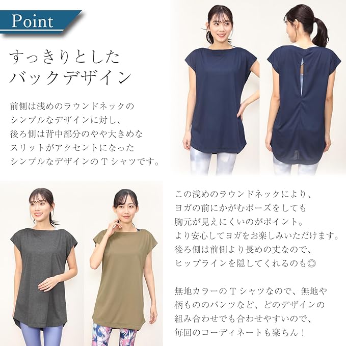 [ON NISHIKI] ヨガウェア トップス Tシャツ 丈長め ゆったり 体型カバー 半袖 レディース 無地 速乾 バックデザイン スポーツウェア フィットネス ランニング トレーニング ジム 宅トレ 運動 M/L/LLサイズ | KAZESHOP