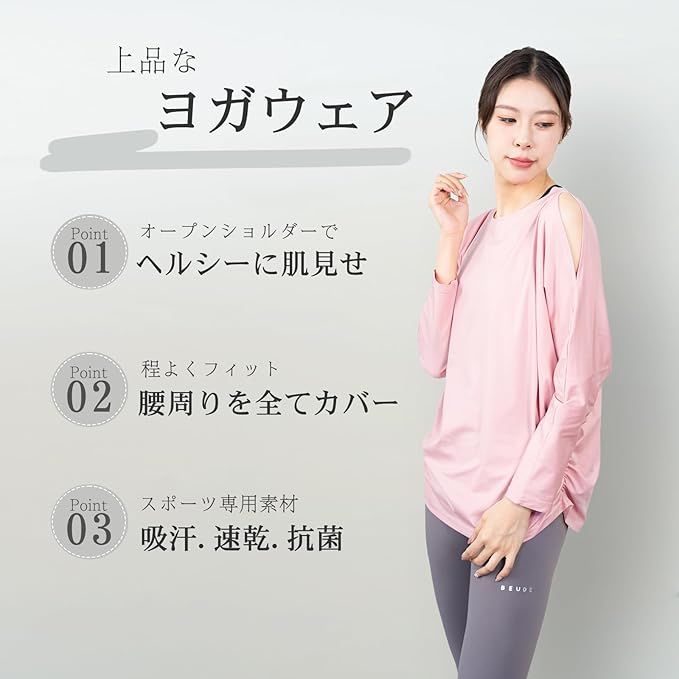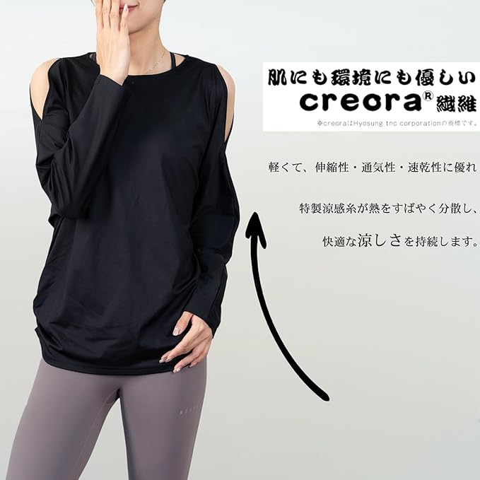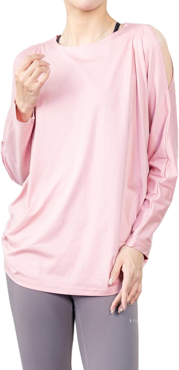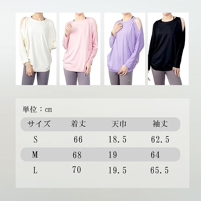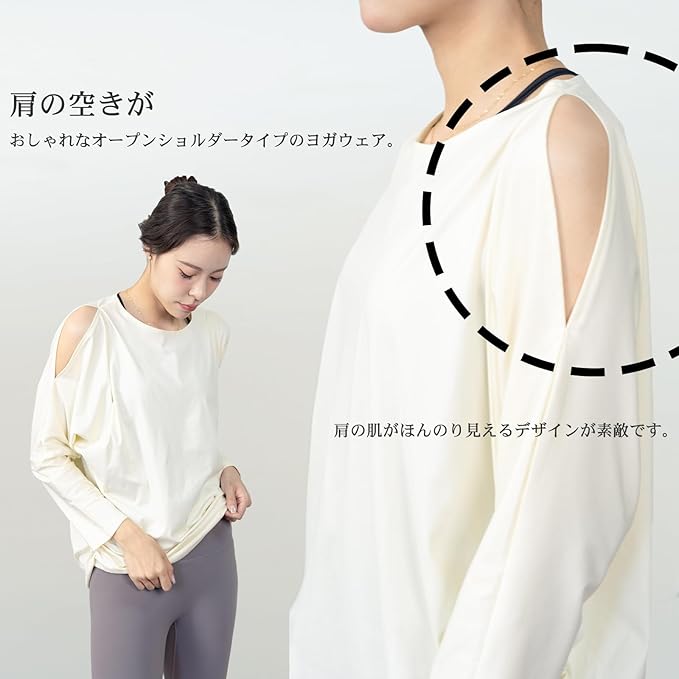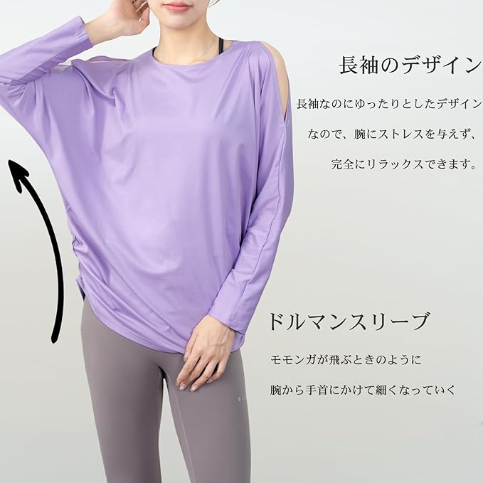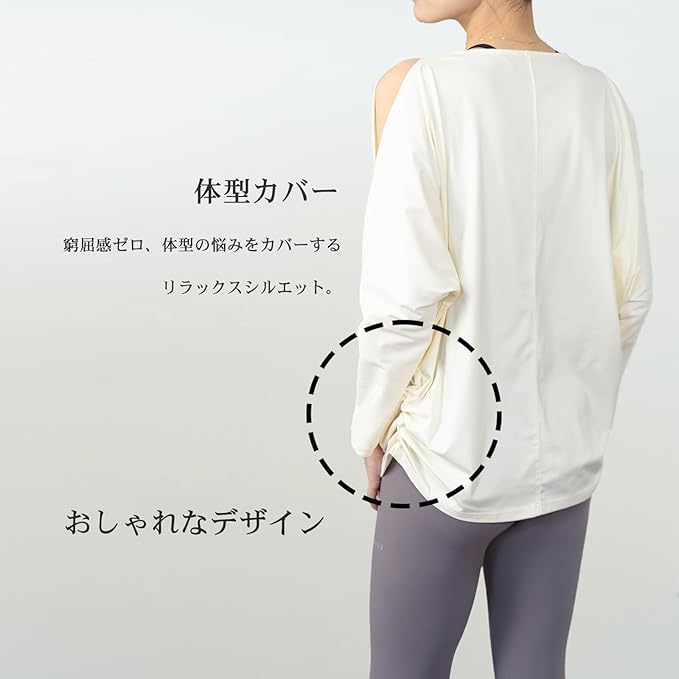 [iito.seasons] ヨガウェア レディース トップス 丈長め 長袖 オープンショルダー ドルマンスリーブ ゆったり フィットネスウェア 体型カバー ロング丈 冷感シャツ 薄手 吸汗 速乾 UVカット 紫外線対策 おしゃれ 人気 | KAZESHOP