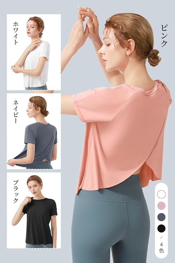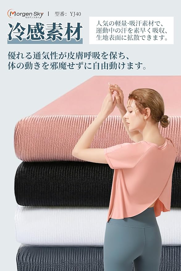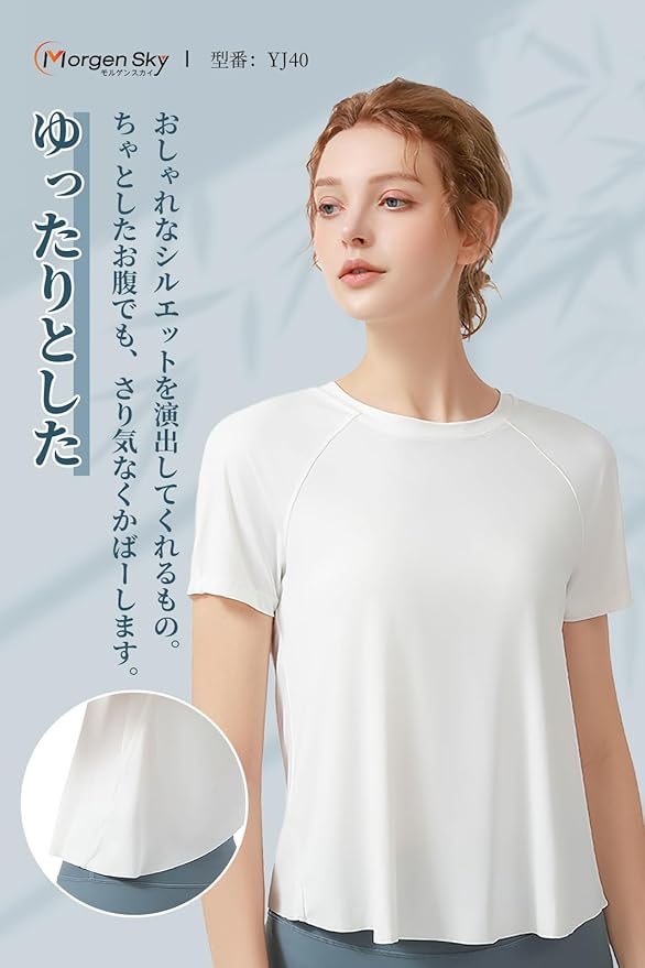 [MORGEN SKY] プラクティスシャツ 半袖シャツ 優雅 真夏ヨガウェア Tシャツ 吸汗速乾 冷感 UVカット UPF15 ストレッチ インナー ワンポイント トレーニング レディース ジュニア バレエ ダンス ランニング フィットネス YJ40