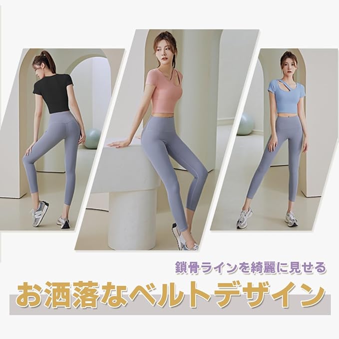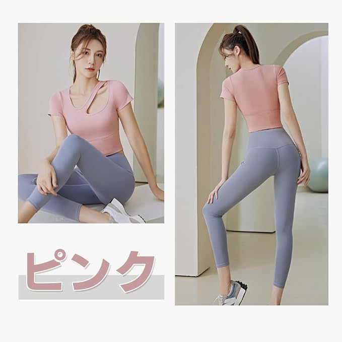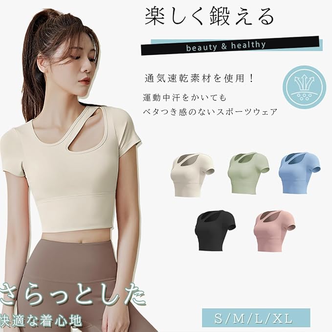 [SLINX] レディース ヨガウェア カップ付き 半袖 tシャツ トップス ヨガ 揺れない かわいい オープン 無地 軽量 速乾 ストレッチ スポーツウェア フィットネスバレエ ダンス YDX02 | KAZESHOP