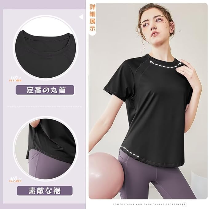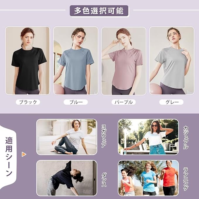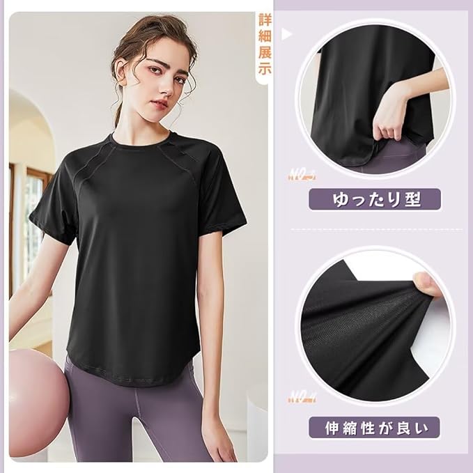 [Rovidorx] ヨガウェア トップス 半袖 tシャツ レディース スポーツ 大きいサイズ スポーツウェア ゆったり ピラティスウェア ジムウェア トレーニングウェア ランニングウェア 体形カバー UVカット 速乾