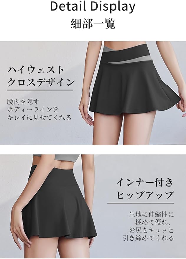 [MORGEN SKY] スカート スポーツ レディース スコート Aライン ミニスカート インナーパンツ テニス ゴルフ ジム ヨガ フィットネス トレーニング ランニング ストレッチ 通気 速乾 MQ005