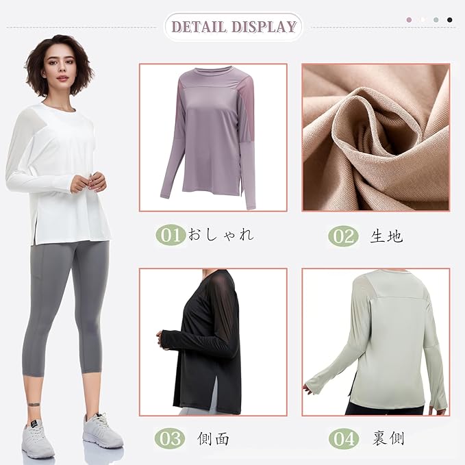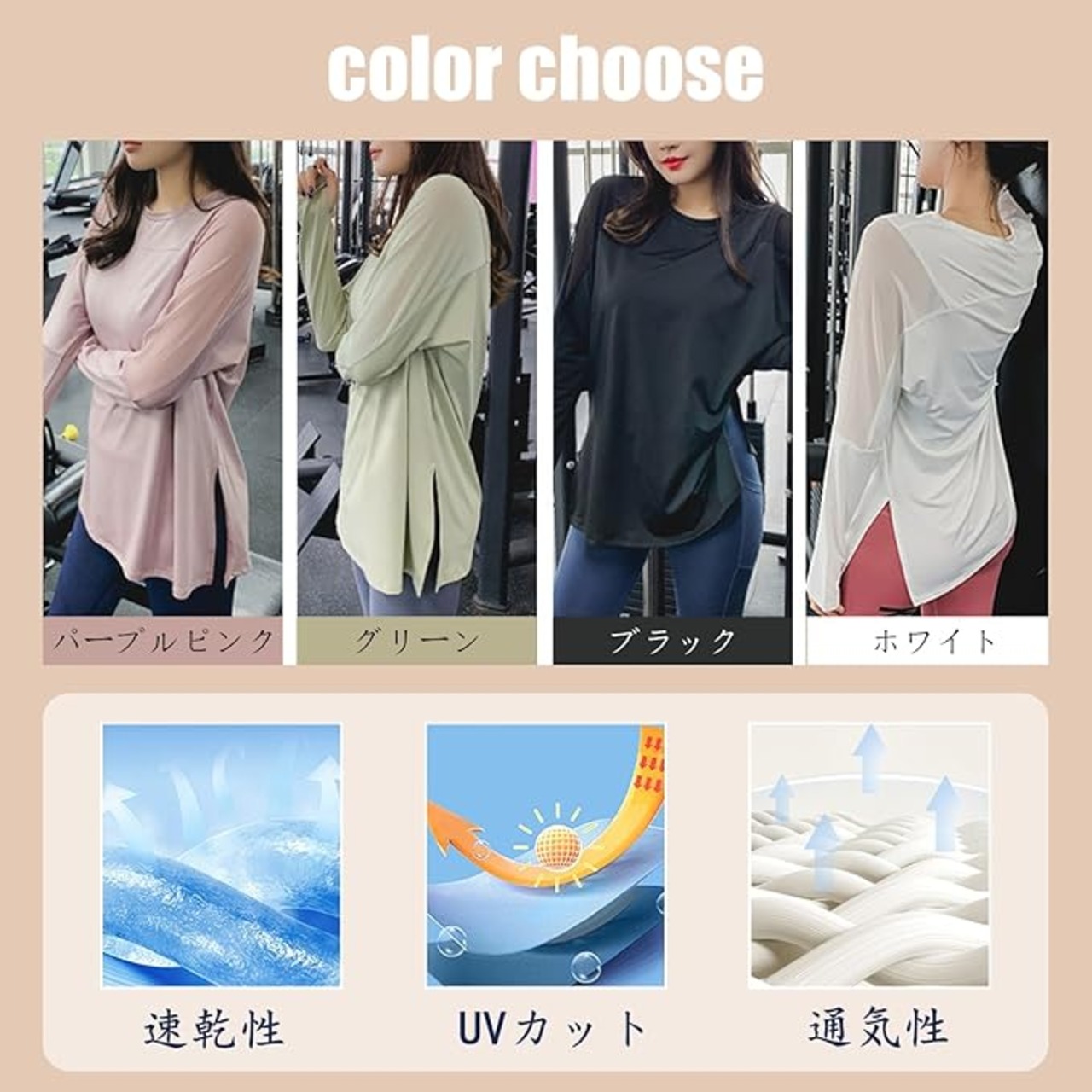 [Zleufirty] ヨガウェア レディース トップス スポーツロングTシャツ トレーニングウェア レディース 長袖 ゆったり フィットネスウェア ランニングストレッチ 吸汗速乾