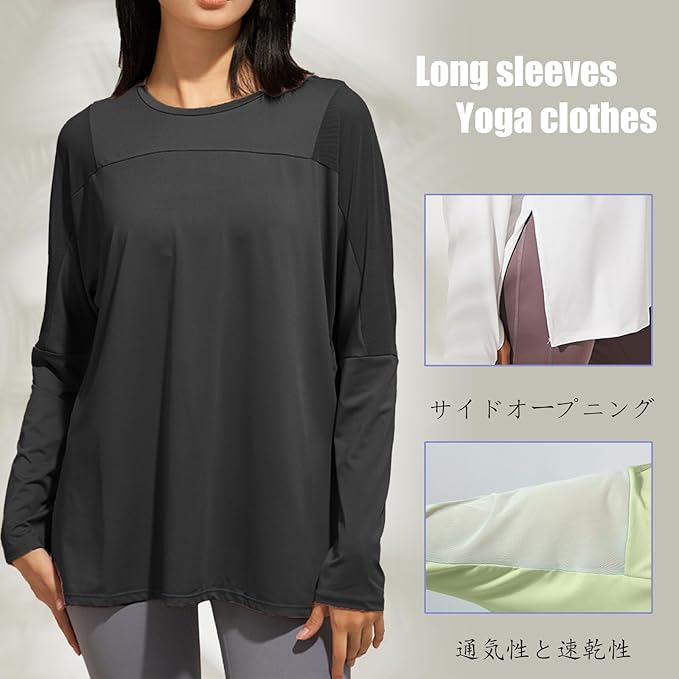 [Zleufirty] ヨガウェア レディース トップス スポーツロングTシャツ トレーニングウェア レディース 長袖 ゆったり フィットネスウェア ランニングストレッチ 吸汗速乾 | KAZESHOP