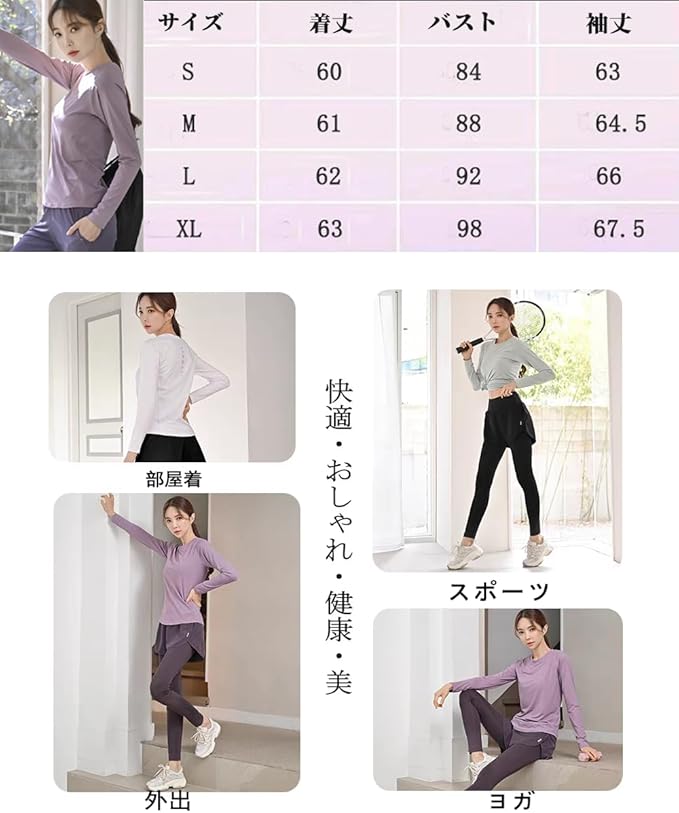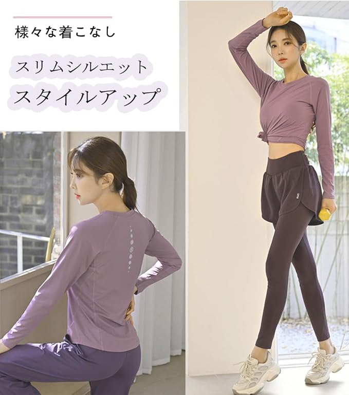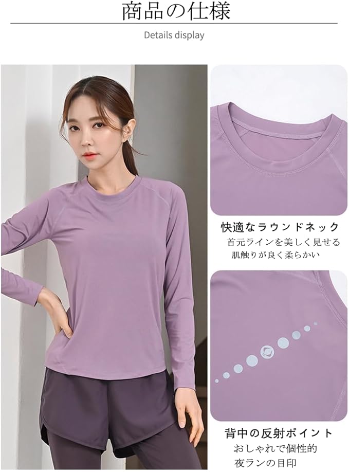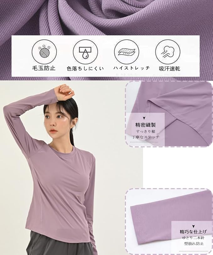 [Karsaer] ヨガウェア トップス 長袖tシャツ レディース スポーツ フィット ランニング ジム ピラティスウェア ホットヨガ 吸汗速乾 UVカット yoga A0058