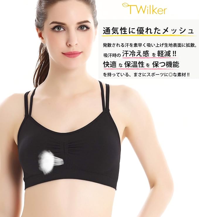 [T WILKER] 2枚組スポーツブラ 揺れない ヨガウェア レディース トップス 通気性 ナイトブラ スポーツブラジャー ヨガブラ 細い紐がXデザイン 可愛い ブラトップ 伸縮性 ノンワイヤーブラ