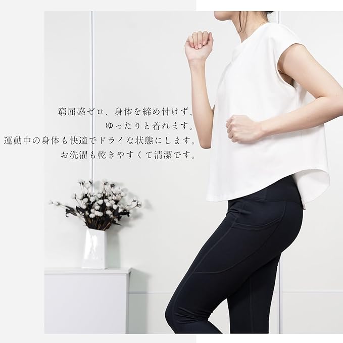 [iito.seasons] ヨガウェア トップス レディース 丈長め 半袖 ゆったり フィットネスウェア 体型カバー めくれない ロング丈 冷感シャツ カジュアル スポーツウェア ランニングウェア 薄手 UVカ ット 吸汗 速乾 | KAZESHOP