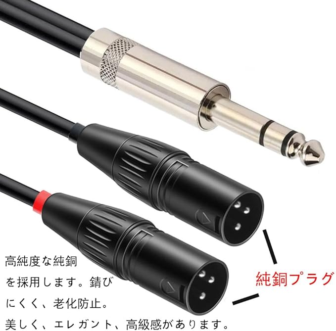 xlr 6.3mm 変換 ケーブル : 導電率に優れた6.35mm プラグを採用し、音質の劣化を防止し、接触抵抗を抑える 6.3mm プラグ です。音質の損失を最小に抑えて原音に最も近い音を再現することができます
