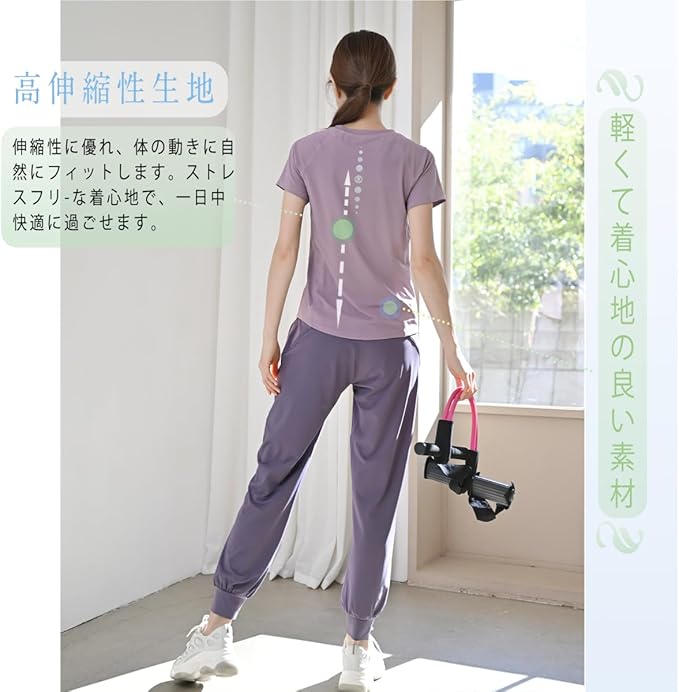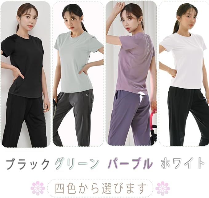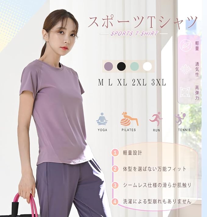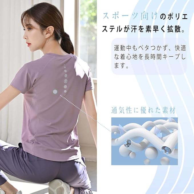 [Pluviva] ヨガウェア トップス スポーツtシャツ レディース 半袖 ピラティス ランニング スポーツウェア ジム ホットヨガ サイクリング フィットネス yoga 速乾