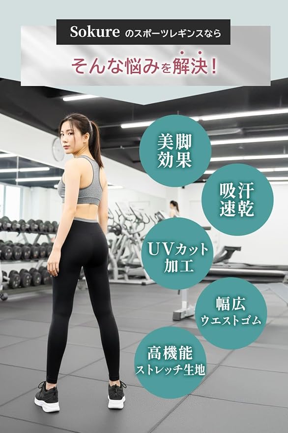 [Sokure] 美脚極める 3Dストレッチ・速乾・シンプルなのに美脚と履き心地を極める スポーツレギンス ヨガレギンス スポーツタイツ ヨガタイツ