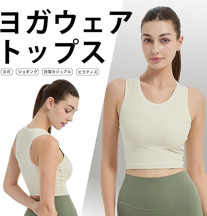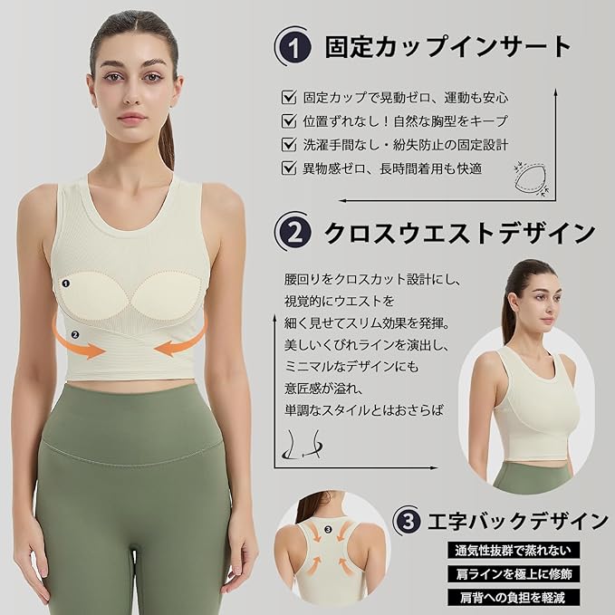 [IRCOLVE] ヨガウェア トップス カップ付き スポーツブラ 揺れない レディース ヨガ ブラトップ ノンワイヤー 和装 ブラジャー カップ付きタンクトップ ブラ付きタンクトップ 吸汗速乾 通気防臭