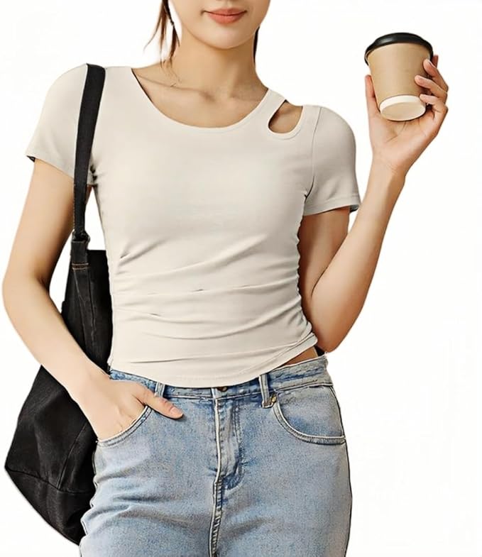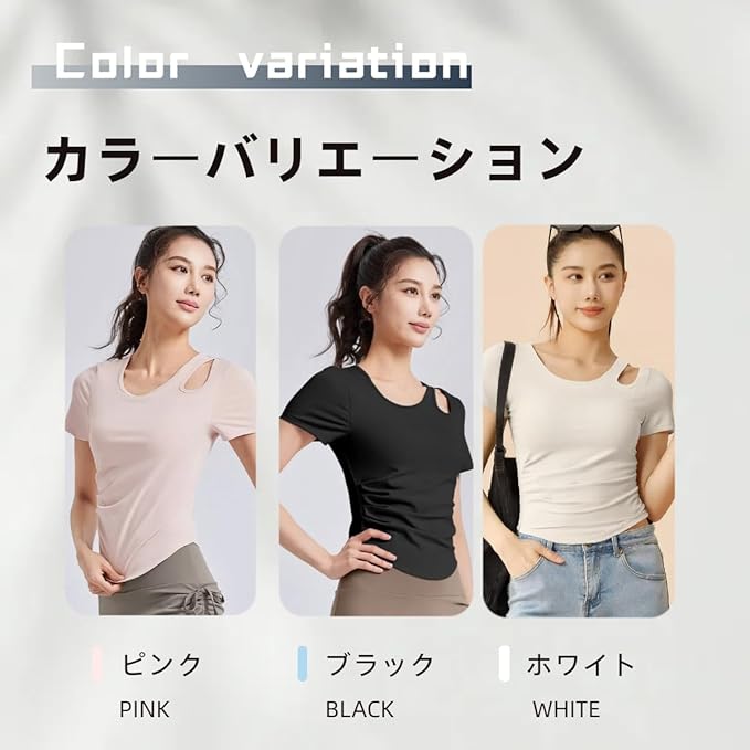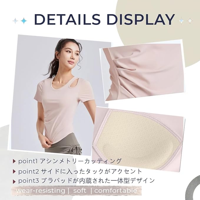 [Asodeer] ヨガウェア レディース トップス プラクティスシャツ 半袖 tシャツ アシンメトリーカッティング カップ付き 吸汗速乾 ショート丈 ストレッチ バレエ テニス フィットネス 運動用