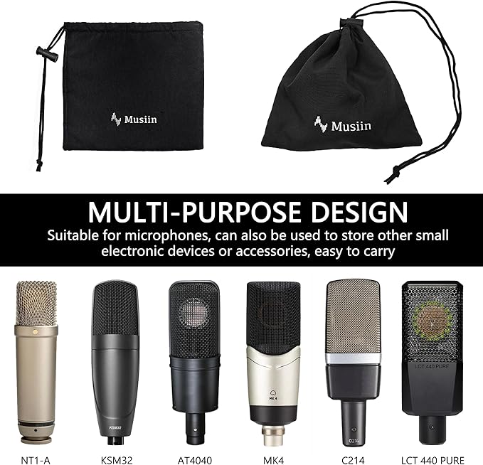マイク収納巾着バッグ ゼンハイザー MK4、AKG C214、AT4040、Rode NT1-A、Lewitt LCT 440 PURE、KSM32に対応 ソフトでポータブル、小さな電子アクセサリーに最適