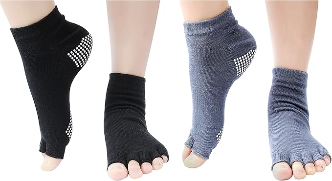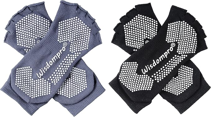[Wisdompro] ヨガソックス 5本指 指なし 滑り止め付き ヨガウェア ヨガ靴下 スポーツ ピラティス バレエ ダンス メンズ レディース 2色2足組