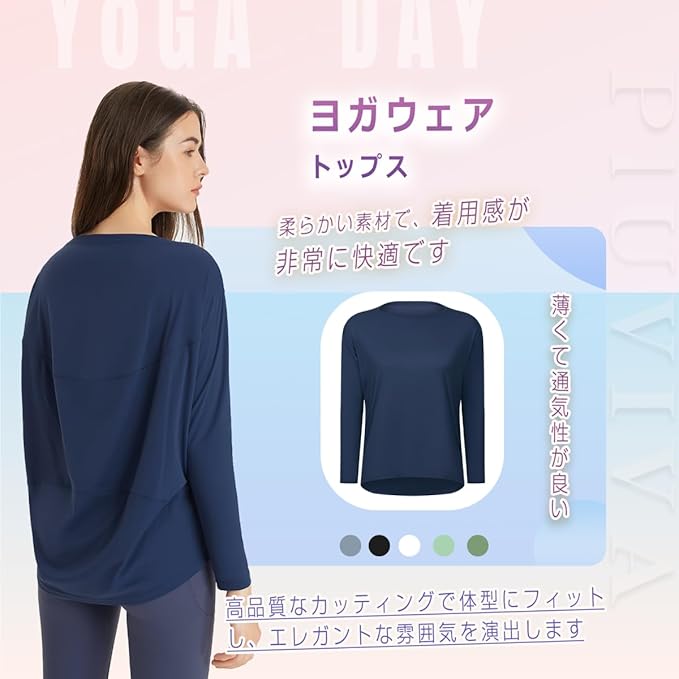 [Pluviva] ヨガウェア トップス スポーツtシャツ レディース 長袖 ピラティス ランニング スポーツウェア ジム ホットヨガ サイクリング フィットネス yoga 薄い 速乾