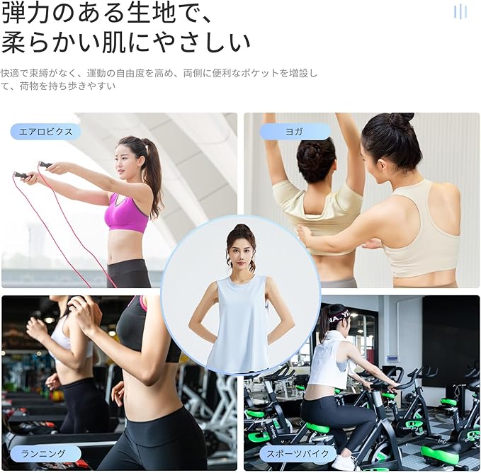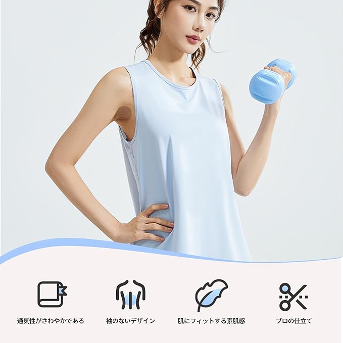 [YbiOK] ノースリーブ レディース タンクトップ – ヨガウェアとして最適な快適性とスタイル 伸縮性のあるメッシュ速乾フィットネストレーニングボディシェーピング