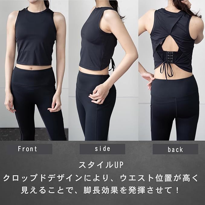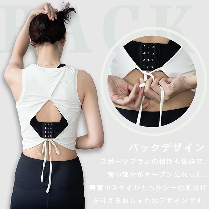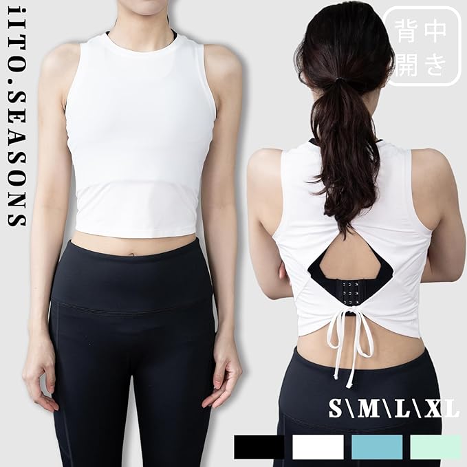 [iito.seasons] タンクトップ ショート丈 レディース ノースリーブ スポーツウェア ヨガウェア へそ出し 背中 通気 防臭 吸汗 速乾 ダンス トレーニング フィットネスクシャツ