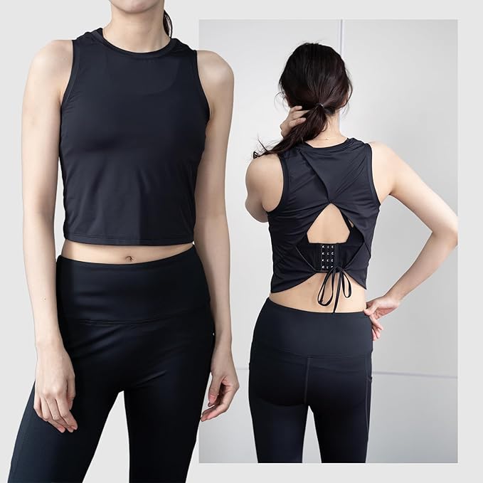 [iito.seasons] タンクトップ ショート丈 レディース ノースリーブ スポーツウェア ヨガウェア へそ出し 背中 通気 防臭 吸汗 速乾 ダンス トレーニング フィットネスクシャツ | KAZESHOP