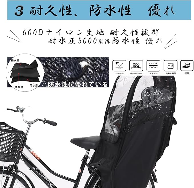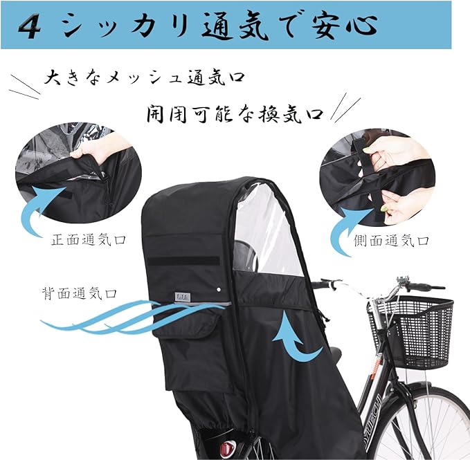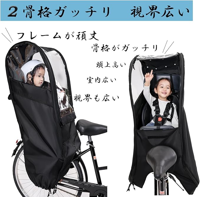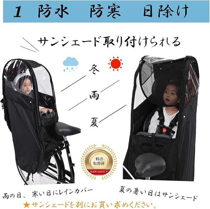 2025 バージョンアップ 自転車 チャイルドシート レインカバー 後ろ 子供乗せ 自転車カバー サンシェード 広々空間 乗り降り簡単 防寒 雨よけ 日よけ