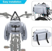 4つの面ファスナーストラップは、このサイクルバッグを後部座席に固定するのに十分な安定性があります。険しい道を走っても、バッグが動き回ることはありません。バッグにデザインされた反射ストリップは、夜間の視認性を高め、夜のライドをより安全に保ちます。