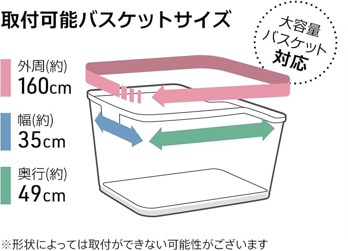 取付可能バスケットサイズ:外周(約)160cm 幅(約)35cm 奥行(約)49cm