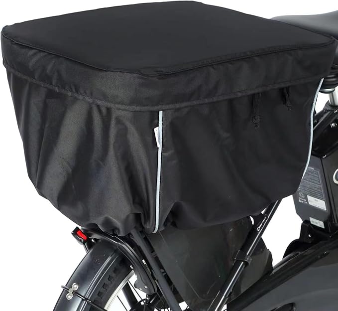 自転車 カゴカバー 後ろ 防水 2段式 厚手 600Dナイロン 反射帯付き 撥水加工 ファスナー両開き 雨よけ 電動アシスト車対応 3色 (ブラック)