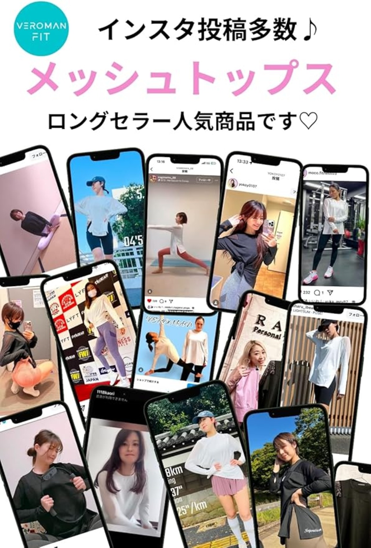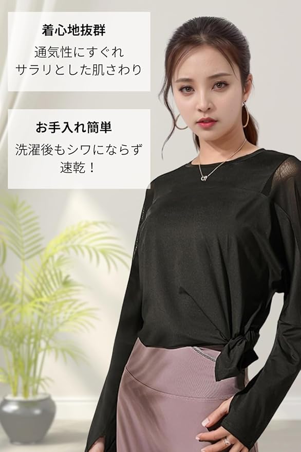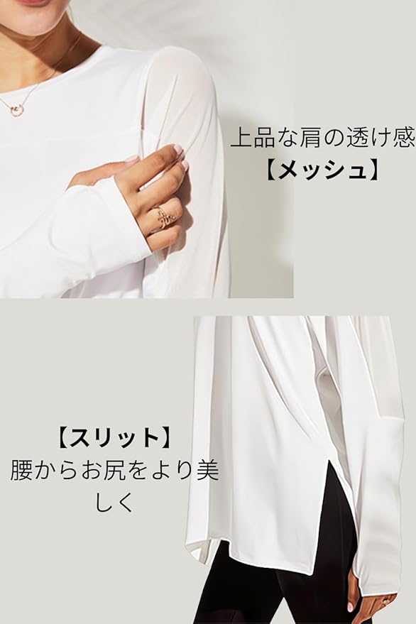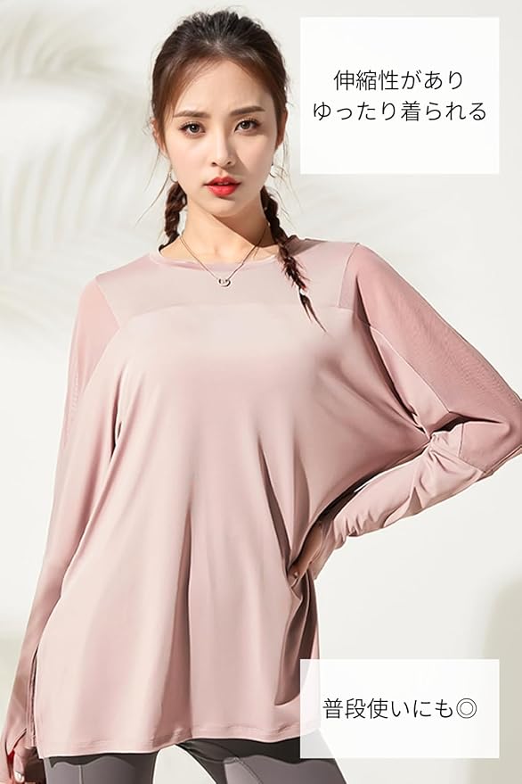 [VeroMan] ヨガウェア トップス 長袖 ロング丈 スポーツ レディース ロングtシャツ メッシュ ピラティス ppi-meshtops