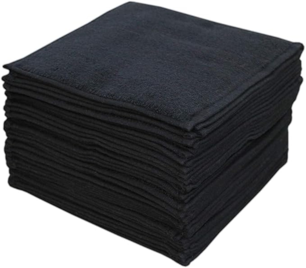 洗い替え便利な 綿100% ふわふわ 無撚糸 ミニタオル ハンカチ ブラック 40枚組 業務用(20 20㎝) 343737