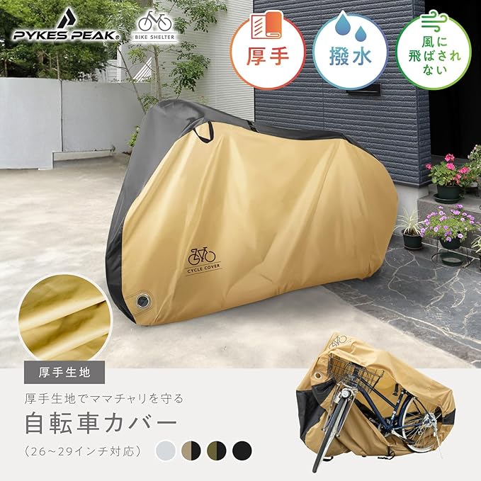 PYKES PEAK ( パイクスピーク ) 自転車カバー サイクル カバー 防犯 防水 防塵 厚手 雨よけ ロックホール / 収納袋 付 UVカット チャイルドシート 対応