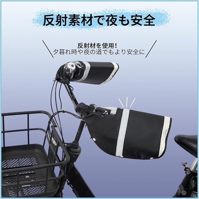 自転車 ハンドルカバー 防水 防寒 防風 ボア着脱可 裏起毛 冬 夏 オールシーズン使える UVカット 反射帯付 しっかりフィット 強撥水 電動アシスト自転車対応 GyuPit