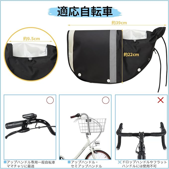 適応自転車:アップハンドル・セミアップハンドルに適用。※ドロップハンドルやフラットハンドルには使用不可