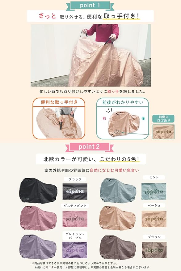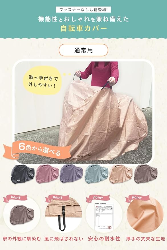 【くすみカラー6色】s p ta 自転車カバー 防水 厚手 破れにくい 電動自転車 210D 29インチまで対応 おしゃれ ソポタ SOP-CO (通常用/ミント)
