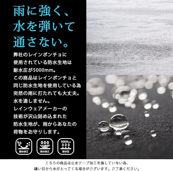 【生地】撥水防水生地・防水&撥水加工で防水性アップ!! 【ダブルファスナー】ダブルファスナー使用で前後から開閉可能!自転車の運転席側からも自転車の前からも大きく開いて出し入れしやすい。