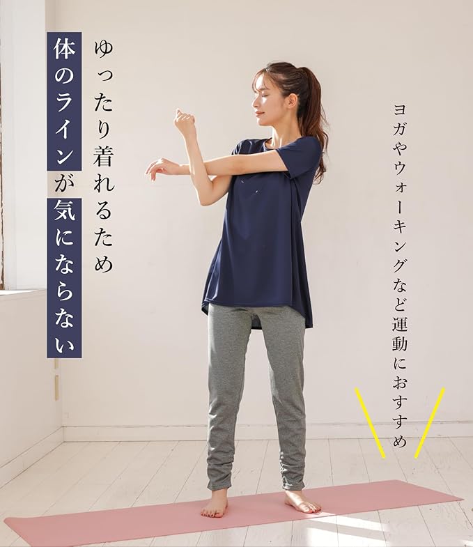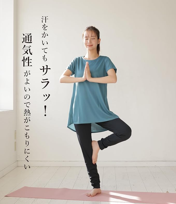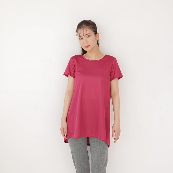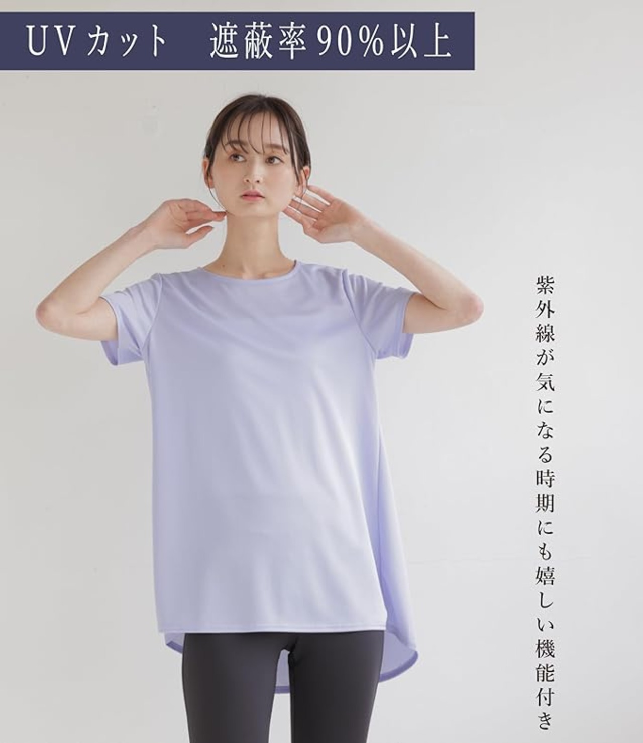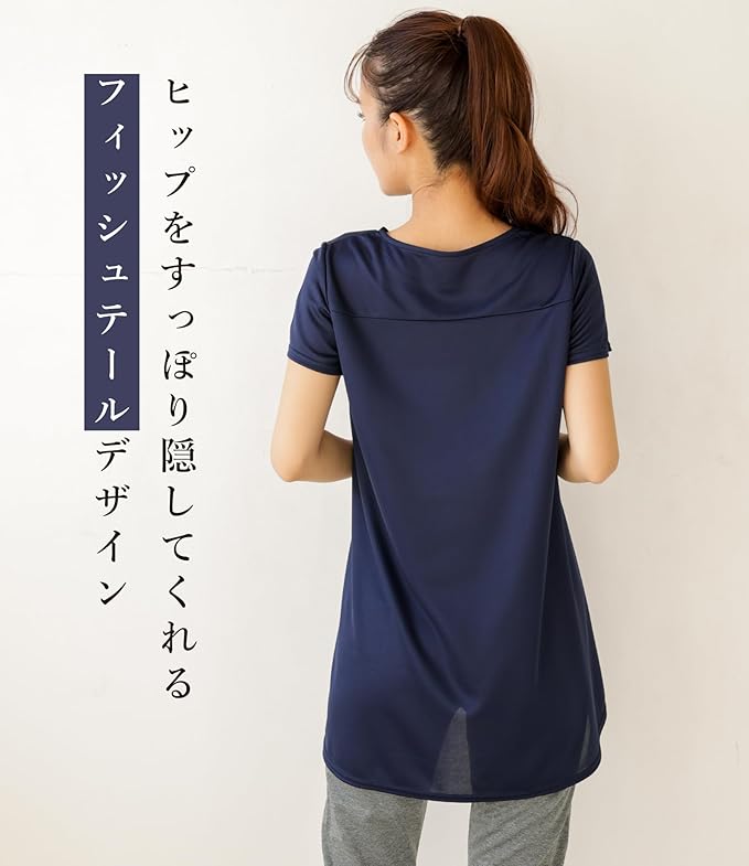 [egneL] エグネル 日本製 トップス トレーニング ウェア ヨガ レディース 吸汗 速乾 UVカット メッシュ生地 お尻隠れる 体型カバー スポーツ 半袖 婦人 春 夏