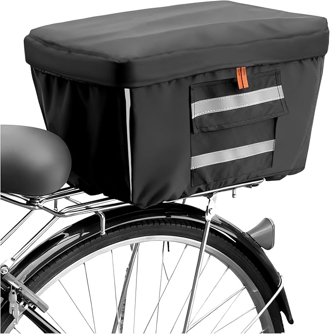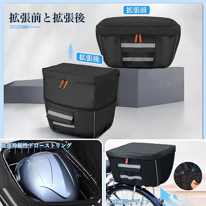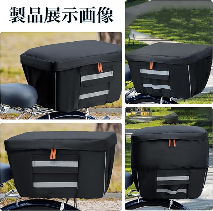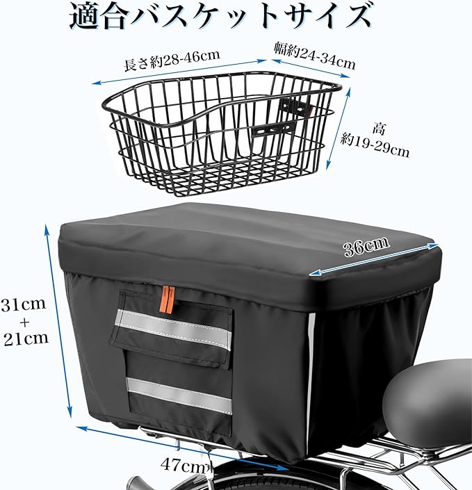 自転車 カゴカバー 後ろ 防水 2段式 (黒, L)