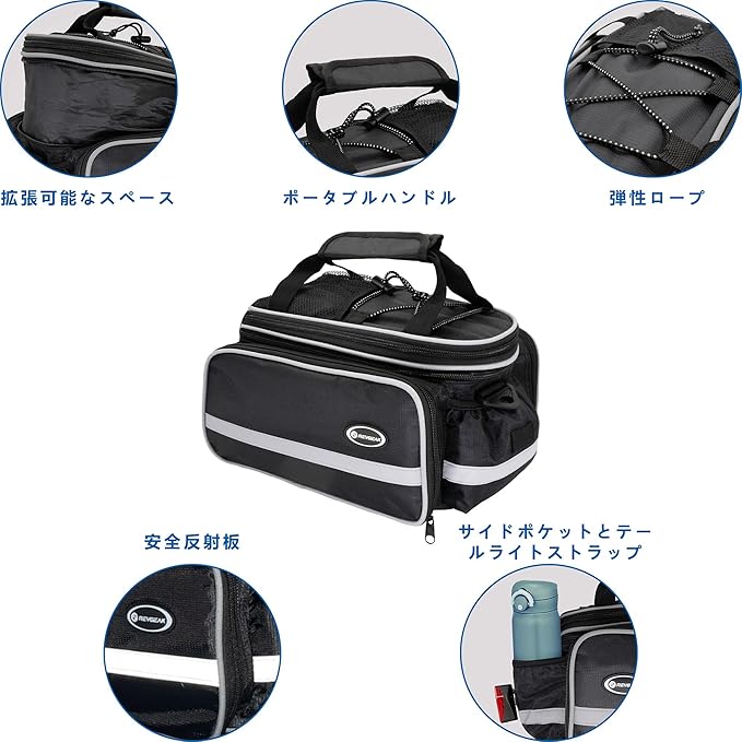 REYGEAK 自転車ラックバッグ、10L-25L 多機能ポリエステルサドルトランクショルダーパニア自転車用、ブラック大人用大容量拡張可能な荷物、防雨カバー付き(Black)