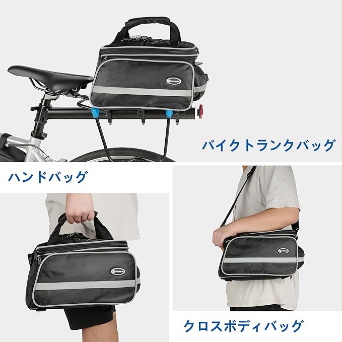多機能バイクバッグ: バイクトランクバッグとして使用できます。 ジッパーを開けるとサドルラックバッグとして。 自転車バッグの上部にはハンドルがあり、ハンドバッグとして使用できます;同時に、付属の調節可能なショルダーストラップを取り付けることでショルダーバッグとしても使用できます