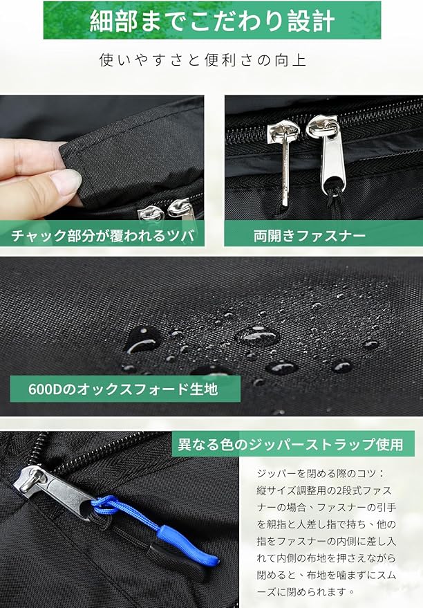【雨の日でも安心の撥水・防水加工】撥水・防水加工を施しているので、梅雨時期や雨の日に効果を発揮します。撥水とは、水を玉状にして弾く加工。防水とは、水が入り込まないようにする加工。