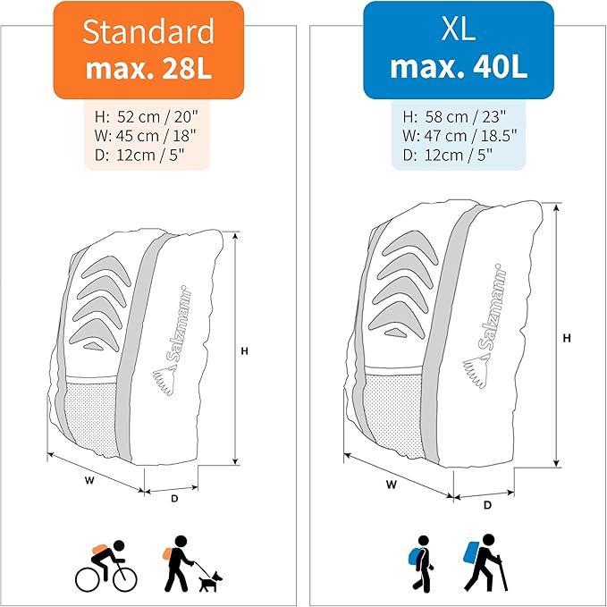 Salzmann 防水リュックカバー・反射付き|28L~40L対応|3Mスコッチライト使用