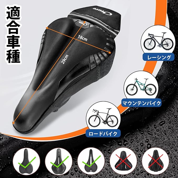 【適合車種】サイズ17cm*29cm*4cm 、ロードバイクやマウンテンバイク、クロスバイクといったスポーツサイクル、サドルの小さい折り畳み自転車に適しています。 一般のシティサイクルには適しておりません。