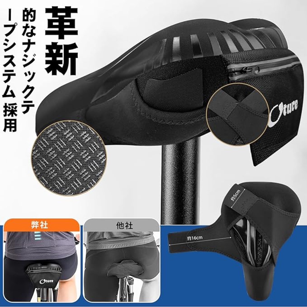 Oture 自転車 サドルカバー 超肉厚 低反発クッション 革新的なテープクロス式 全くズレない