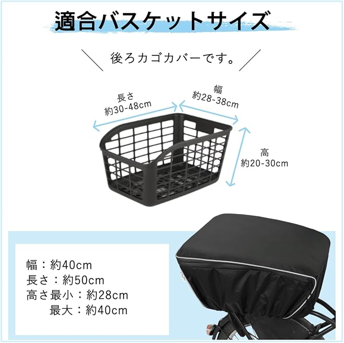 自転車 カゴカバー 後ろ 防水 二段式 容量アップ 撥水加工 止水ファスナー 反射帯付き 自転車 バスケット 後ろ レインカバー 日よけ 雨よけ GyuPit