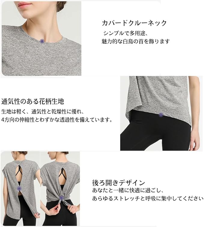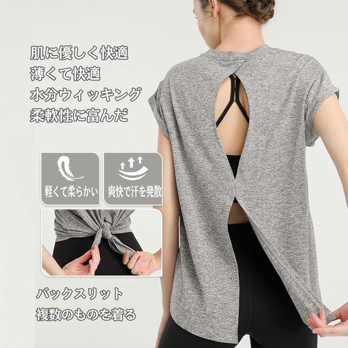 [Yodilala] ヨガウェア レディース 美背中 背中開き タンクトップ ゆったり 2way トップス 体型カバー ロング丈 丈長 ノースリーブ シャツ スポーツ フィットネス トレーニング ルームウェア 吸汗速乾 薄手