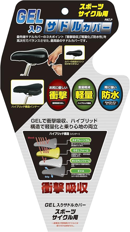 軽量、防水のサドルカバーに衝撃吸収性の高いGELを組み合わせ