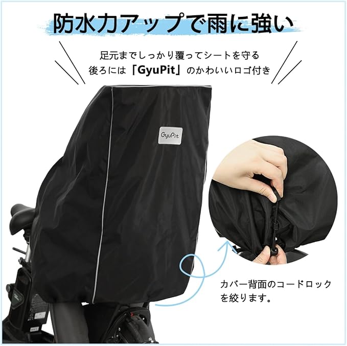 自転車 チャイルドシート カバー 後ろ 子供乗せ 防水 撥水加工 210Dナイロン ヘッドレスト付きチャイルドシートに対応 日よけ 雨よけ GyuPit