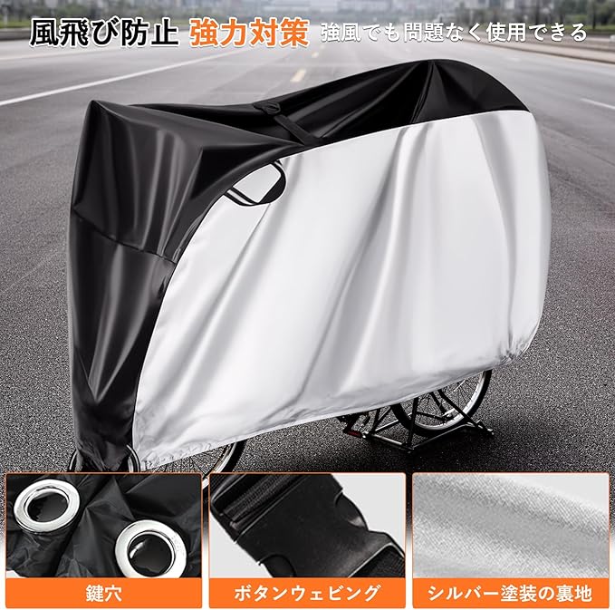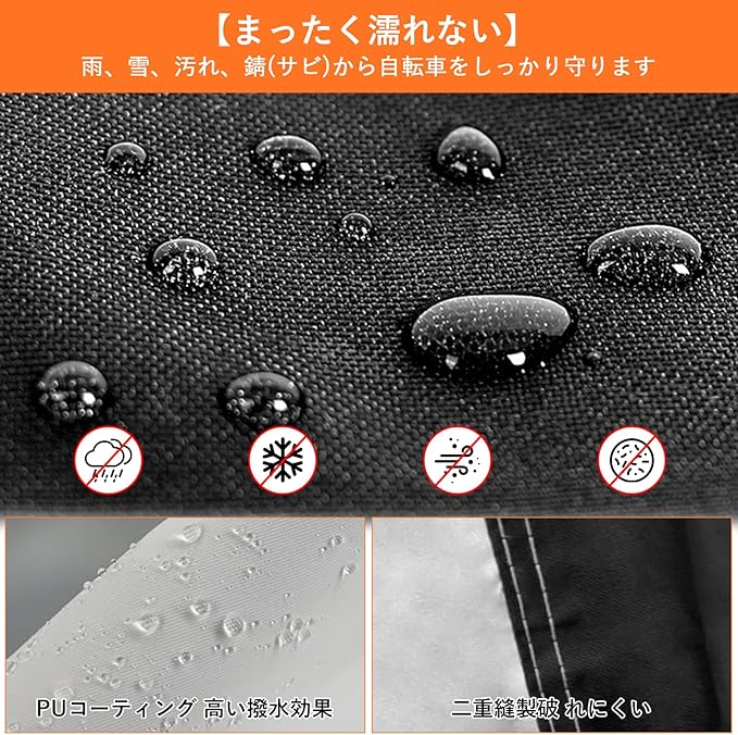 【強力保護|UV加工&防水仕様で365日守る】UV加工:太陽の有害紫外線をカットし、塗装の褪色やタイヤ・パーツの劣化を防止。 防水210D生地:雨天や朝露もしのぎ、サドルやチェーンなどの金属部のサビやカビから愛車を保護します。