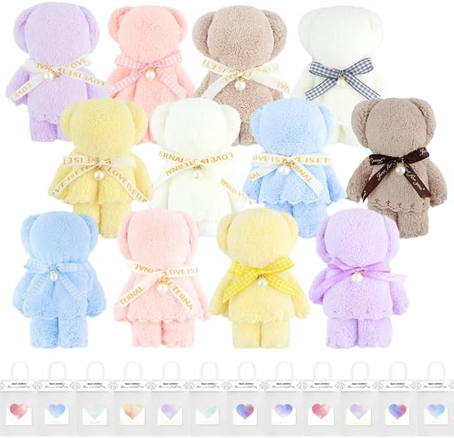 【嬉しい12個セット】様々なシーンで活躍するくまタオル12個セット♪。もらって困る人のいないミニタオルですので、手軽でちょっとした贈り物やノベルティとして、ぜひお役立てください。【プチサイズ】タオルハンカチで作ったとってもかわいいクマのタオルベア、プチギフトやちょっとした贈り物に最適です。年齢を問わず喜ばれる可愛さで、どなたにでもプレゼントできます^_^。ご挨拶の贈り物にもどうぞ^_^。