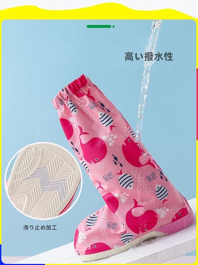 子供 シューズカバー レイン靴カバー 防水 レインシューズカバー ロング 靴かばー 滑らない 子ども用 梅雨対策 雪 耐摩耗性 泥避 靴保護 履きやすい 収納袋付き 自転車 バイク 通学 キャンプ アウトドア