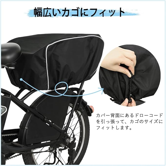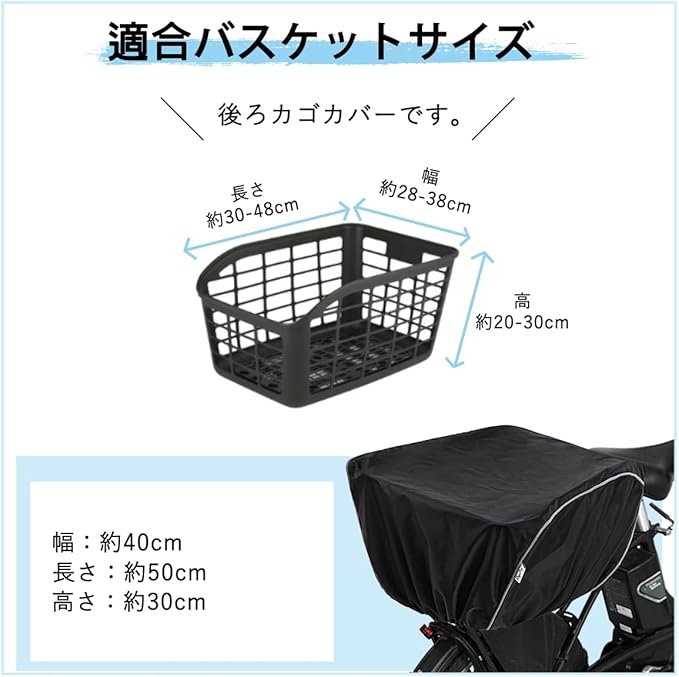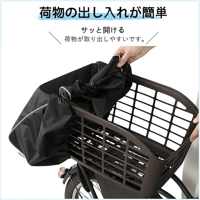自転車 カゴカバー 後ろ 防水 撥水加工 大容量 反射帯付き 取り外し簡単 自転車 バスケット 後ろ レインカバー 日よけ 雨よけ GyuPit